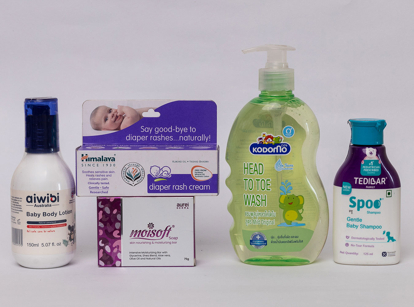 Spoo Shampoo, Moisoft Soap, Himalaya Diper rash Cream, Kodorno Head to Toe Wash, Aiwibi Baby Body Loation